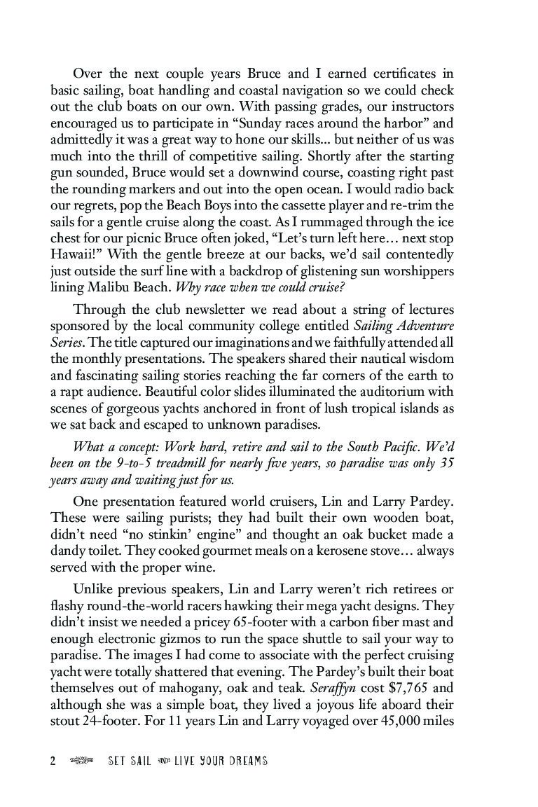 “Set Sail and Live Your Dreams” is the story of how Bruce and April overcame adversity, financial hurdles, and a steep learning curve to create the adventure of a lifetime for themselves and their two young daughters.