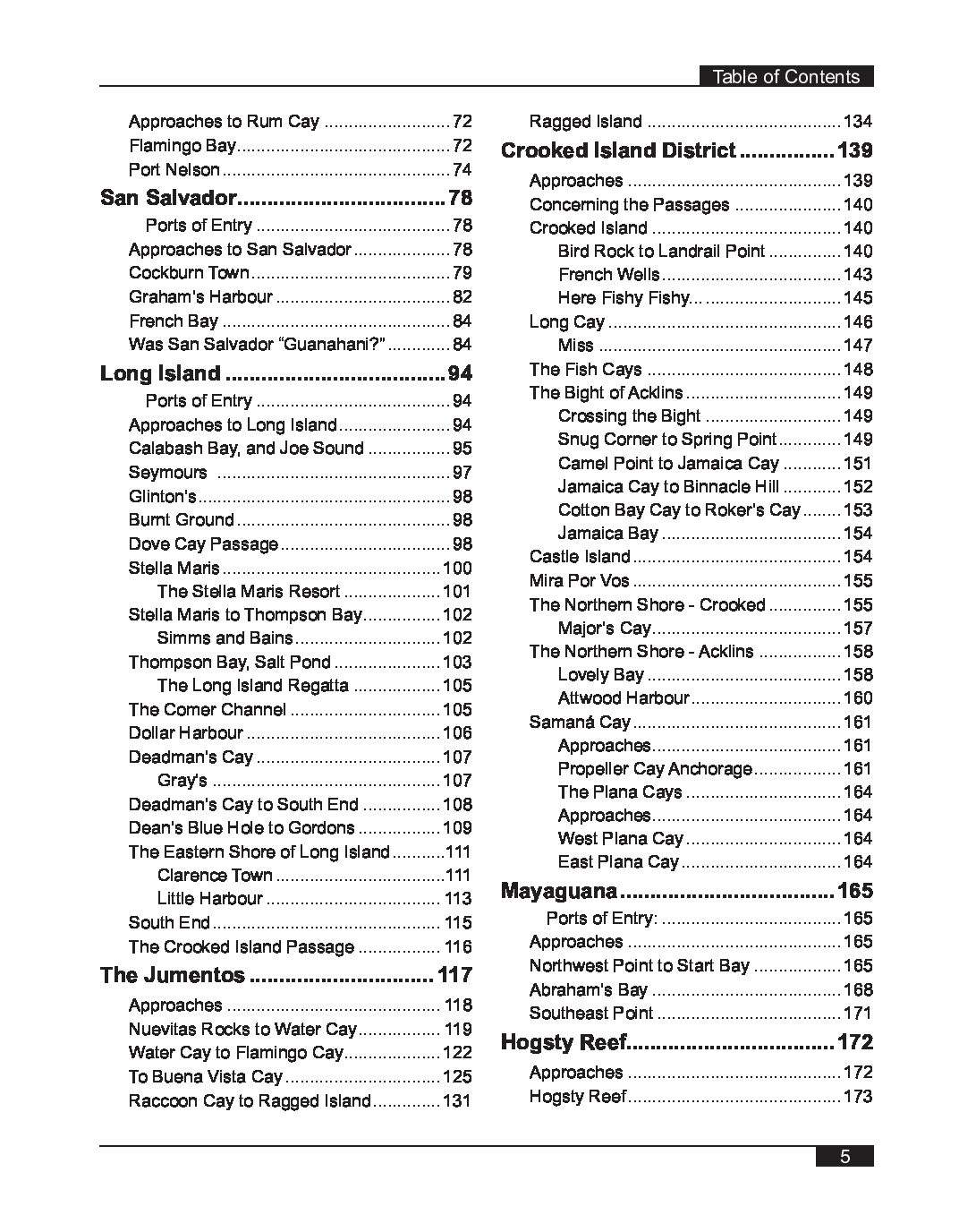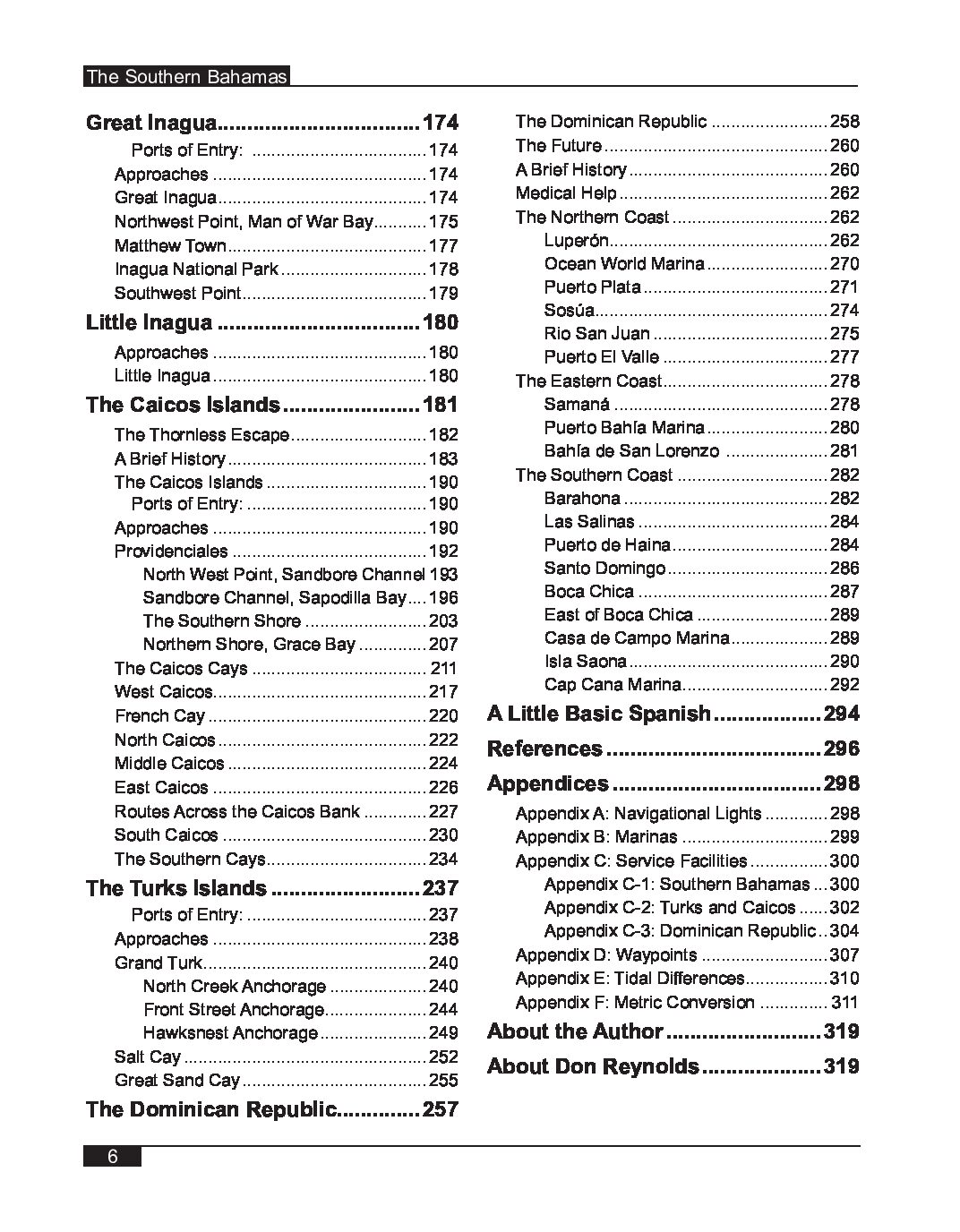 A Cruising Guide to The Southern Bahamas: from Cat Island south to the Turks & Caicos, including the Dominican Republic north coast, details the waters around Cat and Conception Islands, Rum Cay, San Salvador, Long Island, the Jumentos & Ragged Island, Crooked/Acklins, Mayaguana, Inagua, the Turks, and Caicos as well as the Dominican Republic North Coast Ports.